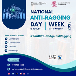 In observance of Anti-Ragging Day on 12 August, followed by Anti-Ragging Week from 12 to 18 August, the UGC and Centre for Youth (C4Y), the UGC National Anti-Ragging Monitoring Agency, suggest the following awareness activities: