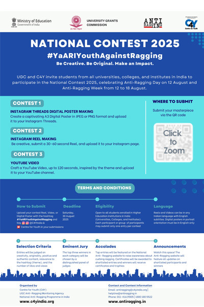 - UGC and C4Y are organising a National Contest 2025 for students: